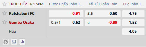 Thông tin tỷ lệ Ratchaburi vs Gamba Osaka:
