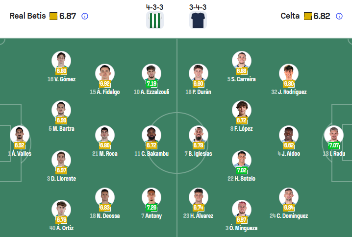 Đội hình dự kiến Real Betis vs Celta Vigo: