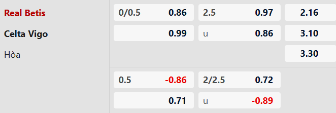 Soi kèo châu Á Real Betis vs Celta Vigo:
