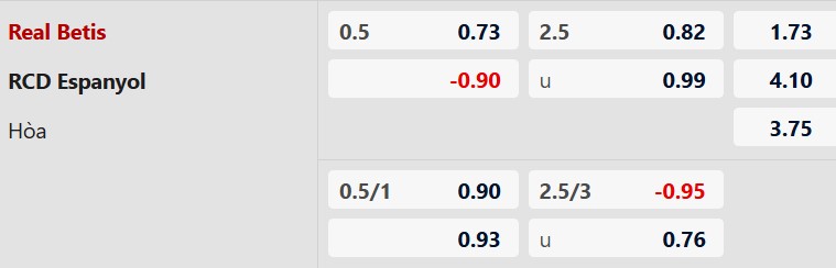 Thông tin tỷ lệ cược Real Betis vs Espanyol: