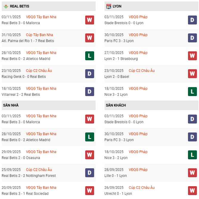 Phong độ thiếu ổn định của Lyon ở những chuyến hành quân xa nhà có thể sẽ khiến họ khó khăn trong việc tìm kiếm điểm số khi hành quân tới Tây Ban Nha để gặp một Real Betis đang có màn thể hiện rất thuyết phục gần đây.