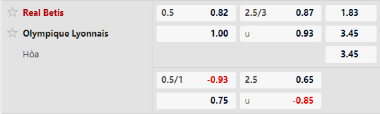 Thông tin tỷ lệ kèo Real Betis vs Lyon: