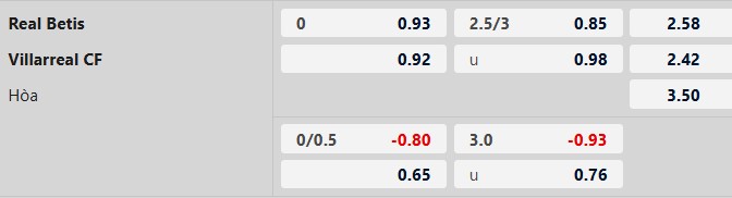 Thông tin tỷ lệ bóng đá Real Betis vs Villarreal: