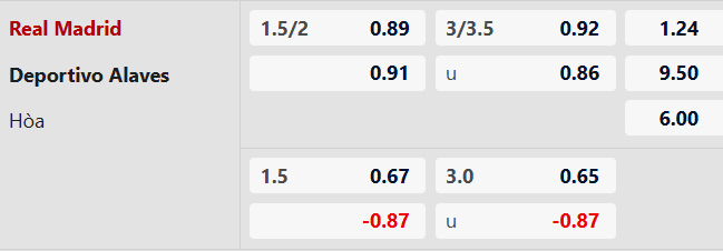 Thông tin tỷ lệ kèo bóng đá Real Madrid vs Alaves: