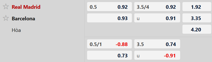 Thông tin tỷ lệ kèo Real Madrid vs Barcelona: