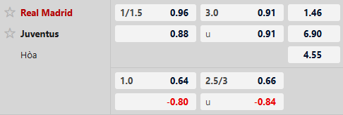 Thông tin tỷ lệ kèo bóng đá Real Madrid vs Juventus:
