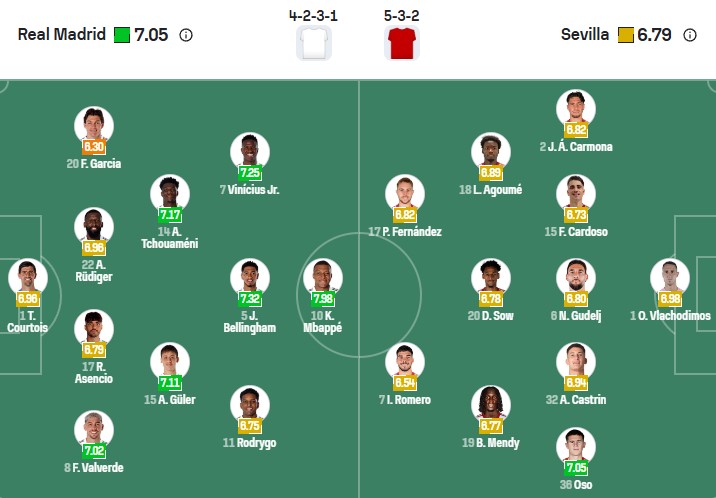 Do đang bị đội đầu bảng Barca bỏ xa 4 điểm trong cuộc đua vô địch La Liga, nên chắc chắn các cầu thủ Real Madrid sẽ tận dụng triệt để lợi thế sân nhà để giành 3 điểm trước Sevilla. Người thắp sáng niềm tin cho đội bóng của HLV Xabi Alonso chắc chắn vẫn là Kylian Mbappe – chân sút đang dẫn đầu danh sách “Vua phá lưới” La Liga với 17 pha lập công. Dù vậy, không dễ để Real Madrid thắng đậm.