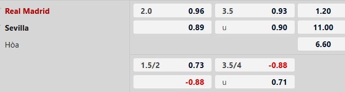 Thông tin tỷ lệ kèo bóng đá Real Madrid vs Sevilla: