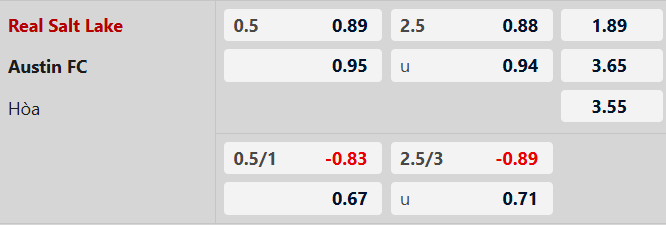 Thông tin tỷ lệ bóng đá Real Salt Lake vs Austin: