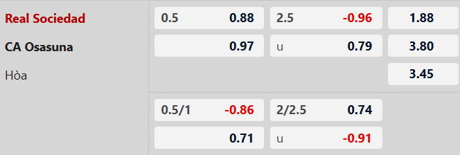 Soi kèo châu Á Real Sociedad vs Osasuna: