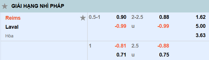 Thông tin tỷ lệ kèo Reims vs Laval:
