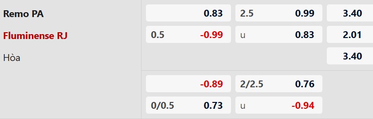 Thông tin tỷ lệ kèo Remo vs Fluminense: