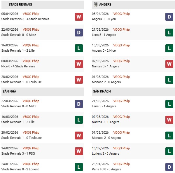 Trên sân khách, Angers cũng thi đấu thiếu ổn định. Họ có thể thắng Nantes nhưng cũng dễ dàng trắng tay trước những đối thủ mạnh hơn. Điều này khiến chuyến làm khách trước Rennes – đội bóng đang khát điểm trở nên không hề dễ dàng.