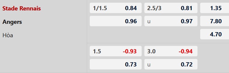 Thông tin tỷ lệ cược Rennes vs Angers: