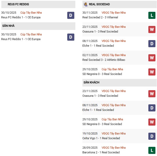 Tuy nhiên, vấn đề của Sociedad là phong độ sân khách chưa thật sự thuyết phục. Họ chỉ thắng 2, hòa 5 và thua 3 trong 10 chuyến hành quân gần đây. Đội bóng xứ Basque đôi khi gặp khó khi đối thủ phòng ngự rất thấp, khiến việc tạo ra các pha phối hợp nguy hiểm bị thu hẹp đáng kể. Dẫu vậy, trước Reus FC – một đại diện hạng 4 thì Sociedad vẫn vượt trội toàn diện về đẳng cấp, chất lượng nhân sự và tốc độ triển khai bóng.