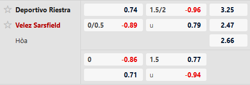 Thông tin tỷ lệ kèo Deportivo Riestra vs Velez Sarsfield:
