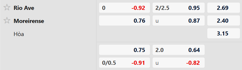 Thông tin tỷ lệ kèo Rio Ave vs Moreirense: