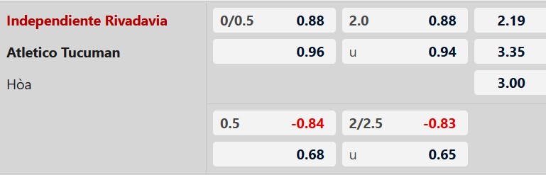 Thông tin tỷ lệ cược Rivadavia vs Atletico Tucuman:
