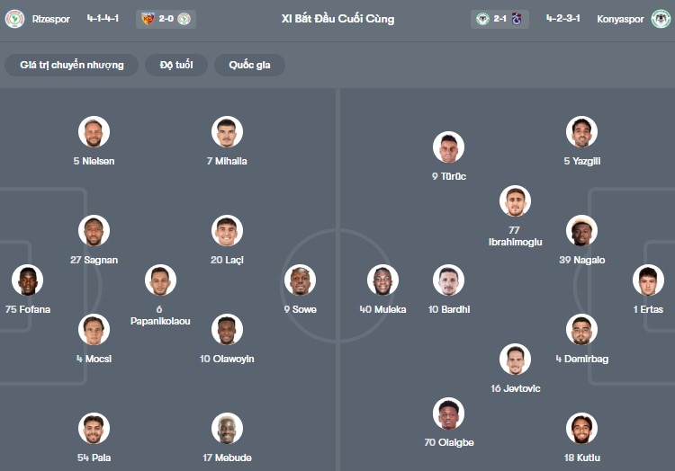 Đội hình dự kiến Rizespor vs Konyaspor: