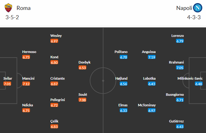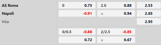 Thông tin tỷ lệ kèo bóng đá Roma vs Napoli: