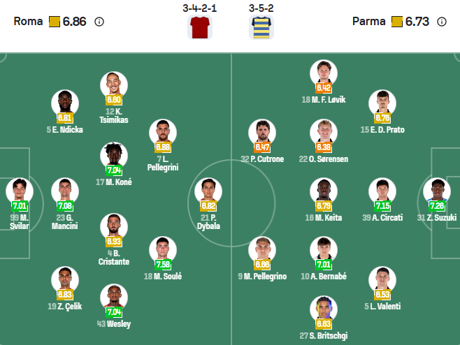 Sau 8 vòng đấu, Roma đang xếp ở vị trí thứ 2 tại bảng xếp hạng Serie A mùa này. Họ cùng có 18 điểm giống như Napoli, nhưng xếp dưới do kém chỉ số phụ. Nếu giành 3 điểm trước Parma ở trận đấu giữa tuần này, đội bóng thành Rome có hy vọng vươn lên vị trí số 1. Do vậy, họ càng có động lực để thi đấu trước Parma.