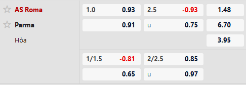 Thông tin tỷ lệ bóng đá Roma vs Parma: