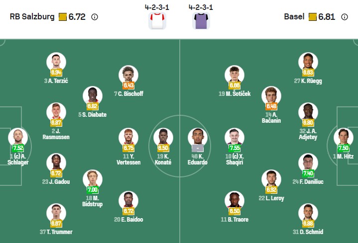 Đội hình dự kiến Salzburg vs Basel: