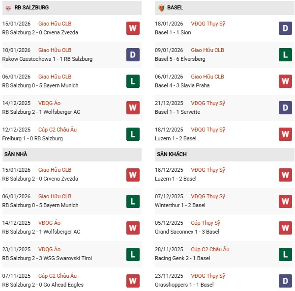 - Salzburg hòa 1, thua 2 trong 3 trận đối đầu Basel gần đây.