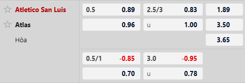 Thông tin tỷ lệ kèo San Luis vs Atlas: