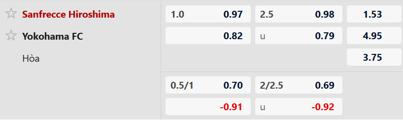 Thông tin tỷ lệ kèo Sanfrecce Hiroshima vs Yokohama: