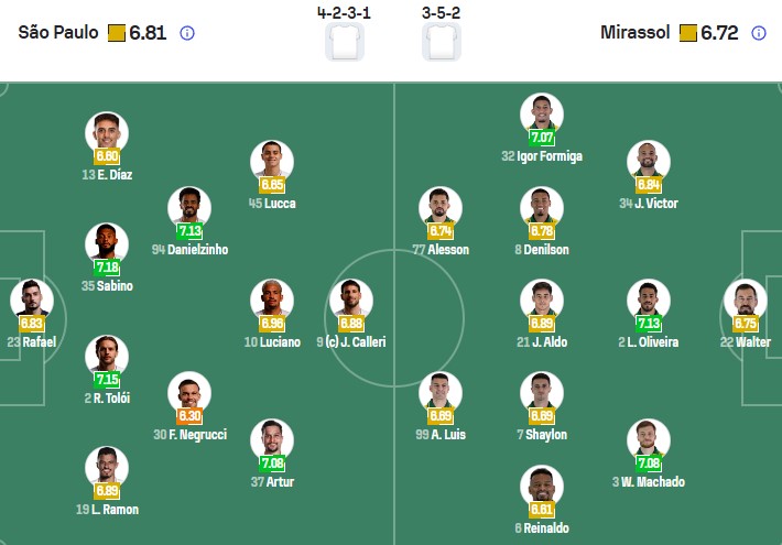 Đội hình dự kiến Sao Paulo vs Mirassol: