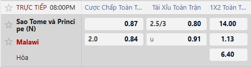Thông tin tỷ lệ Sao Tome vs Malawi: