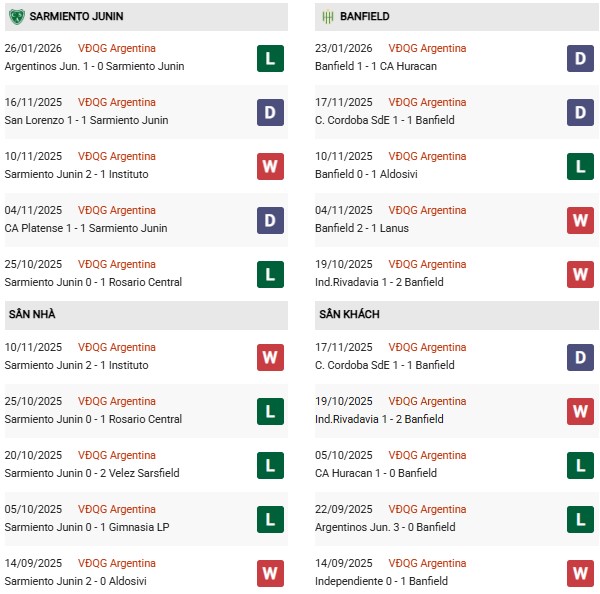 Dự đoán Sarmiento vs Banfield, 07h30 ngày 30/1, vòng 2 VĐQG Argentina, sân Eva Perón. Với phong độ không quá chênh lệch và đều có xu hướng chơi thận trọng, khả năng trận đấu diễn ra giằng co và khó phân định thắng thua là khá cao.