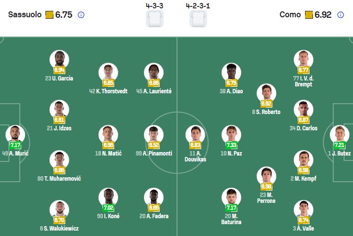 Đội hình dự kiến Sassuolo vs Como: