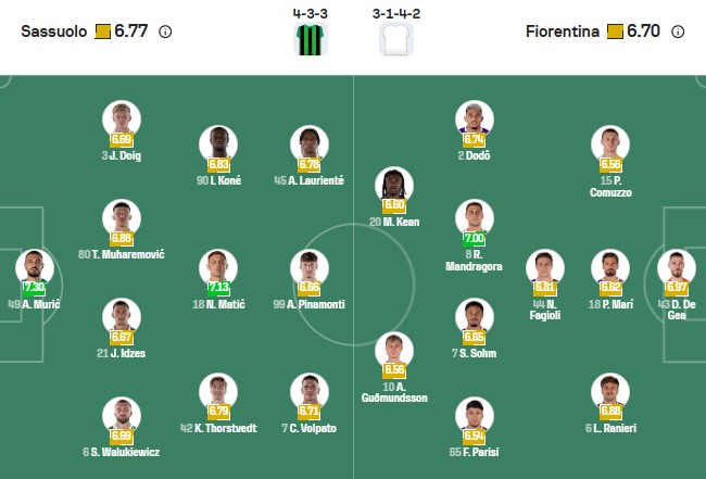 Làm khách của đối thủ yếu Sassuolo, cùng với phong độ ổn định của thủ môn De Gea, Fiorentina đủ khả năng giành điểm thậm chí giành chiến thắng đầu tiên ở Serie A mùa này.