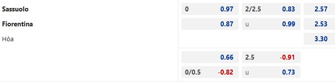 Thông tin tỷ lệ cược Sassuolo vs Fiorentina: