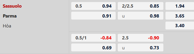 Thông tin tỷ lệ cược Sassuolo vs Parma: