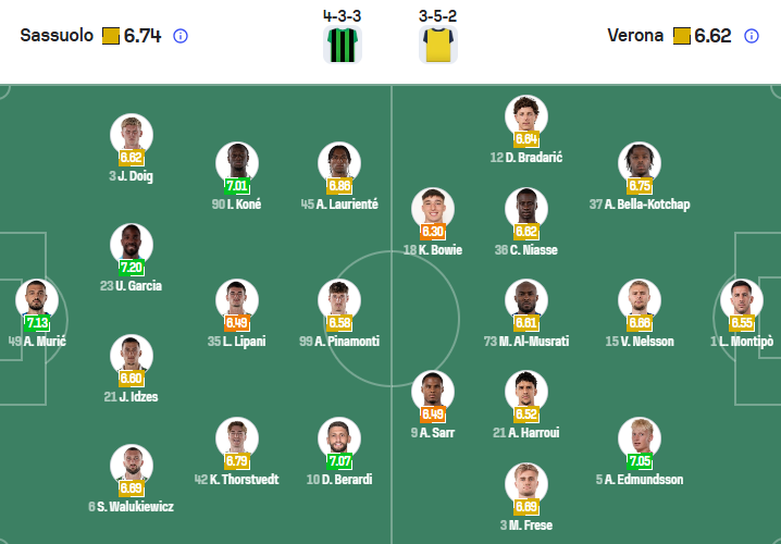 Đội hình dự kiến Sassuolo vs Verona: