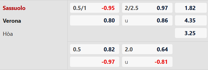 Thông tin tỷ lệ kèo Sassuolo vs Verona: