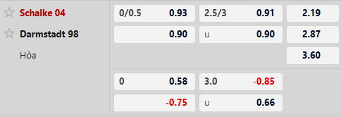 Thông tin tỷ lệ kèo Schalke vs Darmstadt: