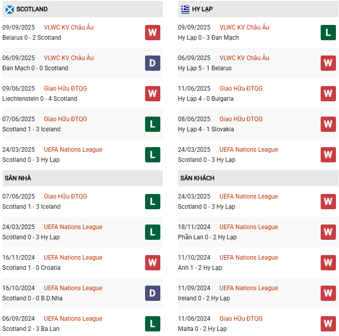 Thành tích đối đầu Scotland vs Hy Lạp: