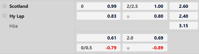 Thông tin tỷ lệ bóng đá Scotland vs Hy Lạp: