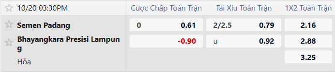 Thông tin tỷ lệ Semen Padang vs Bhayangkara: