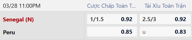 Soi kèo tài xỉu Senegal vs Peru: