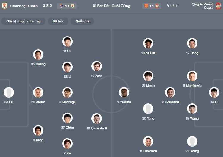 Đội hình dự kiến Shandong vs Qingdao West Coast: