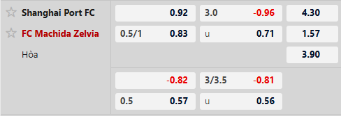 Thông tin tỷ lệ bóng đá Shanghai Port vs Machida: