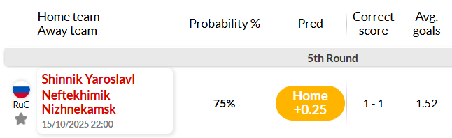 Toàn bộ 7 trận sân nhà của Shinnik kể từ khi mùa 2025/26 khởi tranh đều không xuất hiện nhiều hơn 2 bàn thắng. Kịch bản thực sự quen thuộc này dự kiến tái diễn khi Shinnik so tài cùng Neftekhimik vào thứ Tư (15/10).