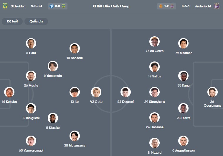 Đội hình dự kiến Sint Truiden vs Anderlecht: