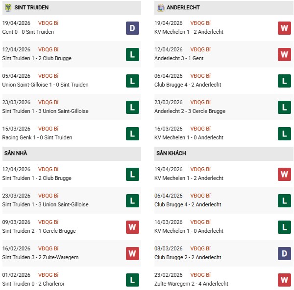 - Trên sân nhà, Sint Truiden thắng 2, thua 5 trước Anderlecht.
