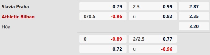 Thông tin tỷ lệ kèo Slavia Praha vs Bilbao: